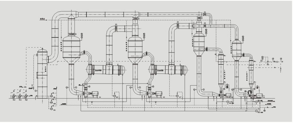 6).整套设备结构紧凑,占地面积小,布局简单流畅,代表了大型成套蒸发设备的发展方向;