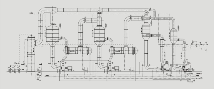 6).整套设备结构紧凑,占地面积小,布局简单流畅,代表了大型成套蒸发设备的发展方向;
