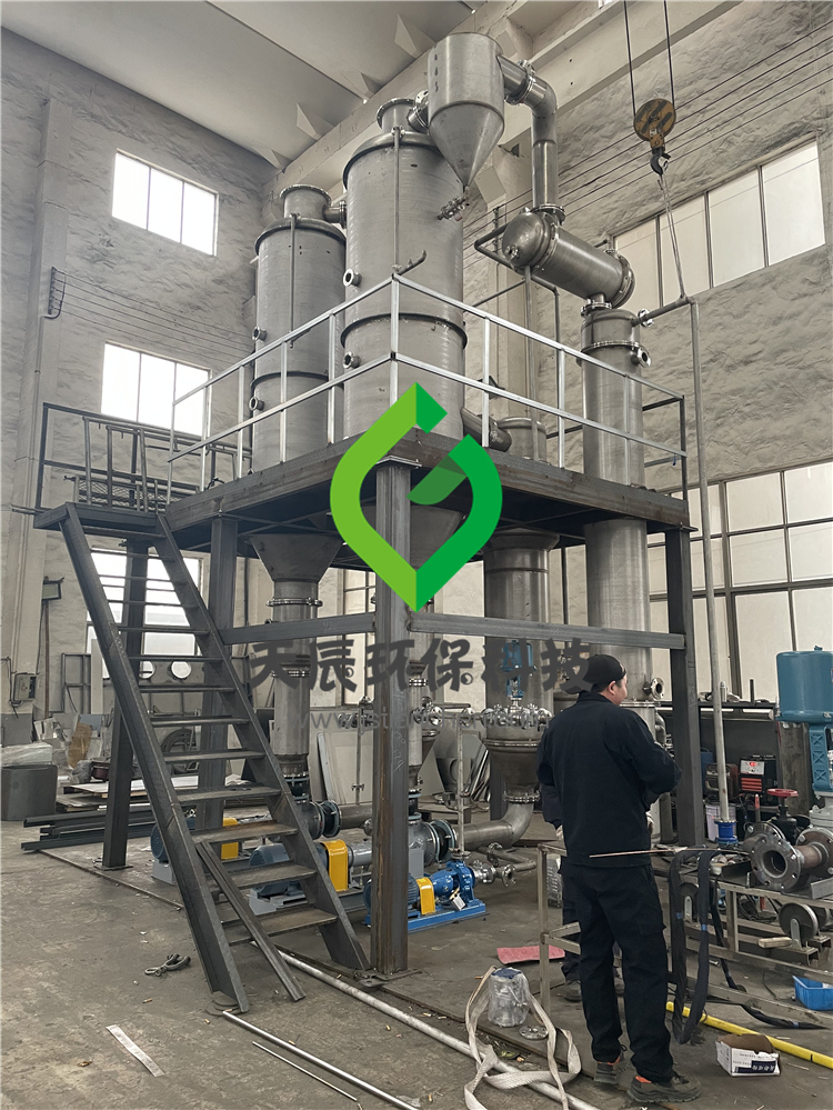 化工行业的高盐废水蒸发器处理难度较大,而且高盐废水蒸发器对常规碳钢、不锈钢腐蚀严重,往往使用几个月就会因设备腐蚀造成维修困难甚至装置报废,若采用钛材或进口双相不锈钢材质制造,设备投资昂贵,运行及维护成本较高,我公司采取特殊的防腐材料制造的三效蒸发器具有优良的耐腐蚀性能,其耐腐蚀性能与钛材及双相不锈钢接近,而设备造价只有前者的三分之一,是高盐废水蒸发器理想的蒸发浓缩装置。