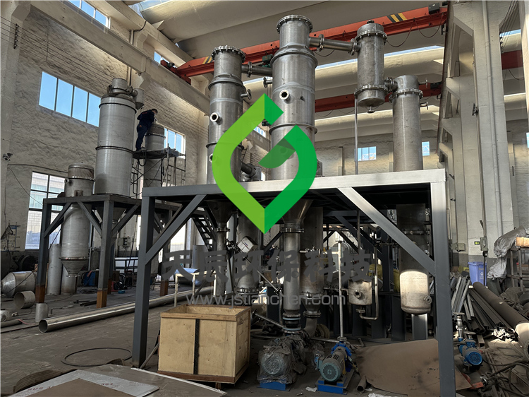 废水蒸发器 针对化工有机废水高盐分高浓度等特点,基于蒸发浓缩结晶的原理.采用多效减压蒸发浓缩结晶有机废水,对浓缩液中的盐分进行分离后,通过集盐器进行回收,浓缩液进行干燥回收或焚烧处理,,蒸发后的冷凝水一般通过后续的生化处理进行处理,可以实现废水排放的标准。